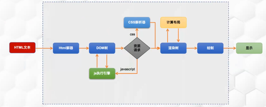 - HTML解析:解析HTML文档,构建DOM树