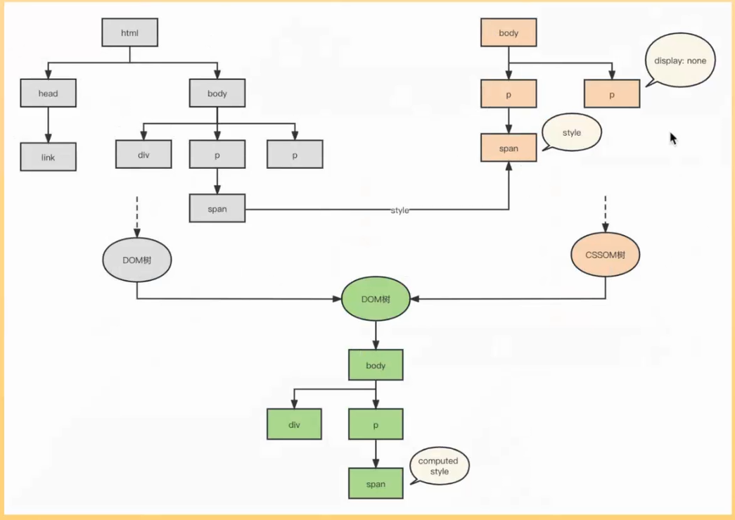 - 渲染树:DOM和CSSOM的结合产物