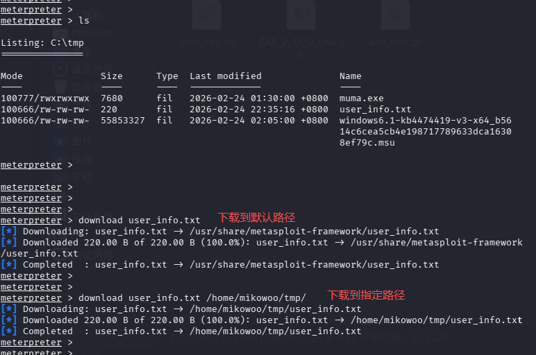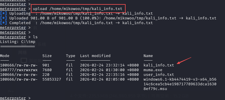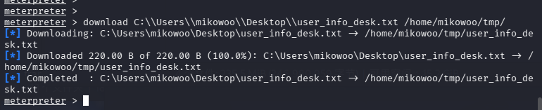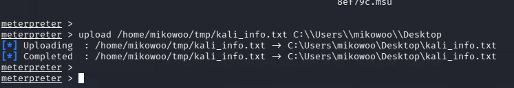 upload /home/mikowoo/tmp/kali_info.txt C:\\Users\\mikowoo\\Desktop