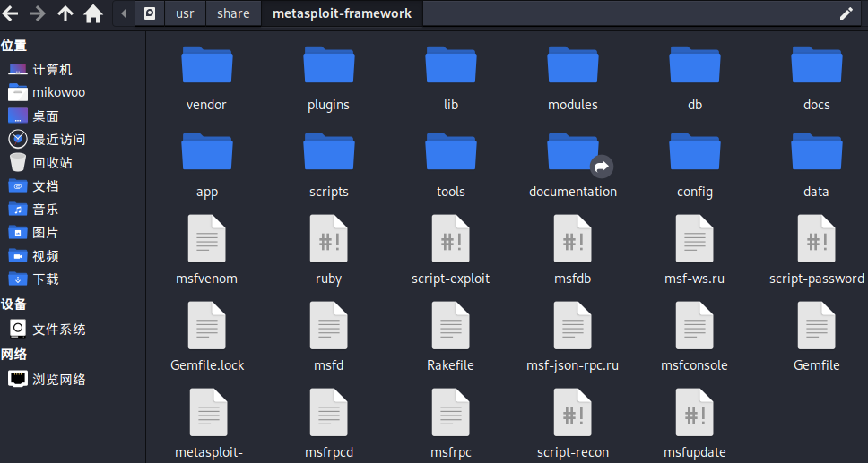 - Metasploit框架是由 Ruby语言编写,其各个目录作用如下