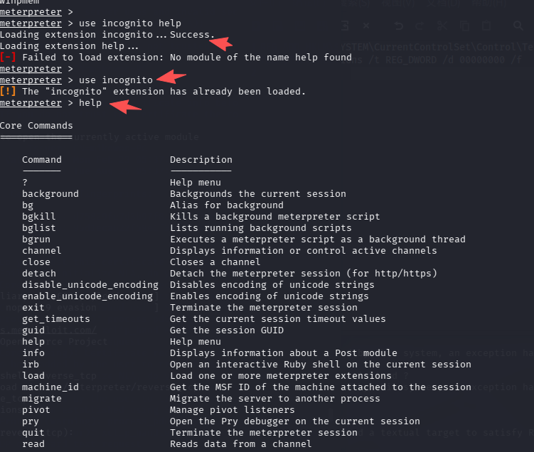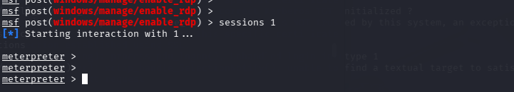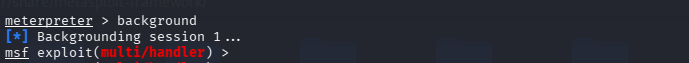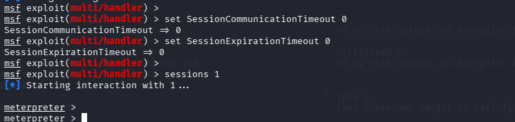 set session 1 //该会话号需与 Melasploit与目标主机建立的Meterpreter的session号一致