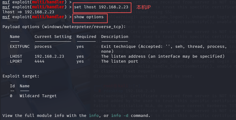 利用上文中的木马,通过Metasploit 与 目标主机建立 Meterpreter会话