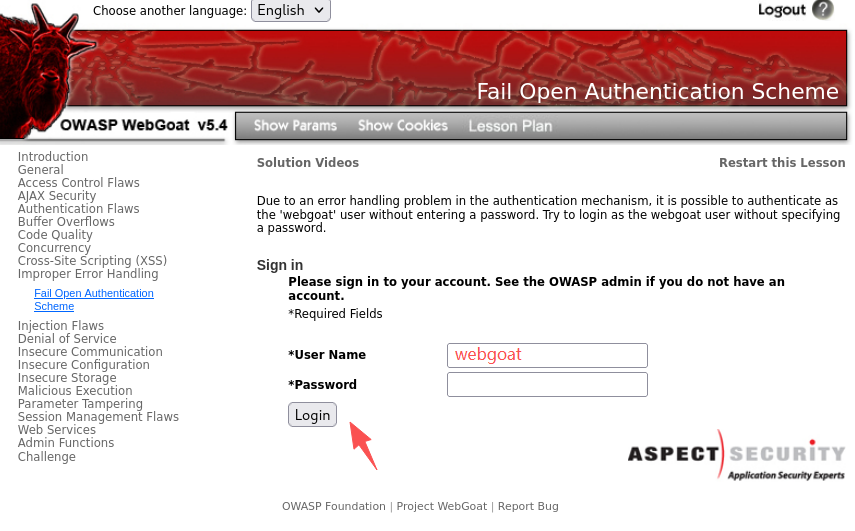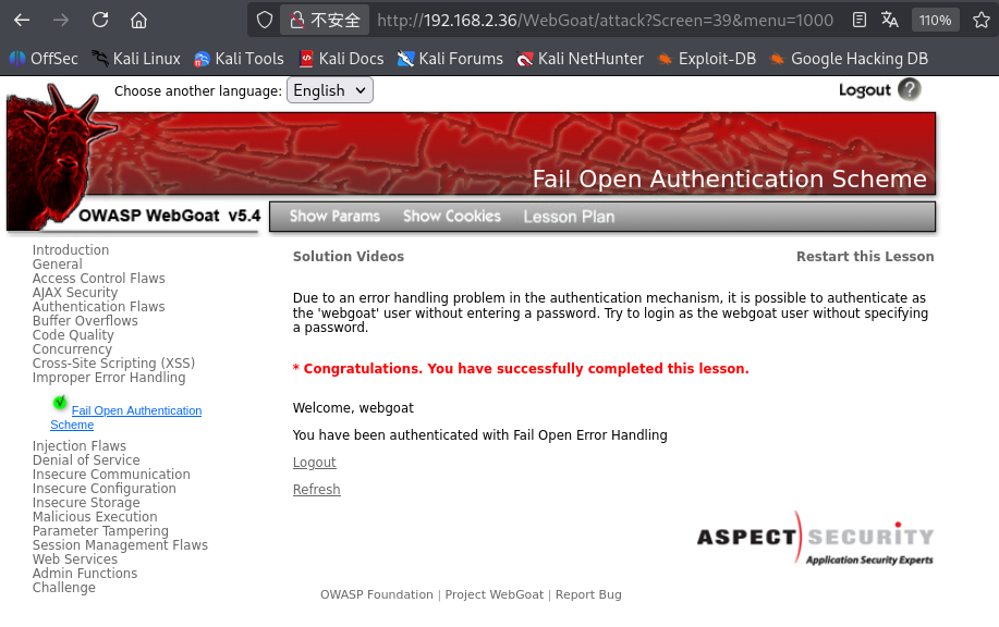 再次在OWASP WebGoat界面只填写用户名进行登录