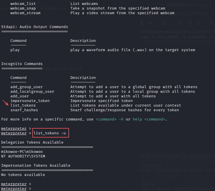 在加载了 incognito 插件前提下,使用该命令查看目标用户的Token