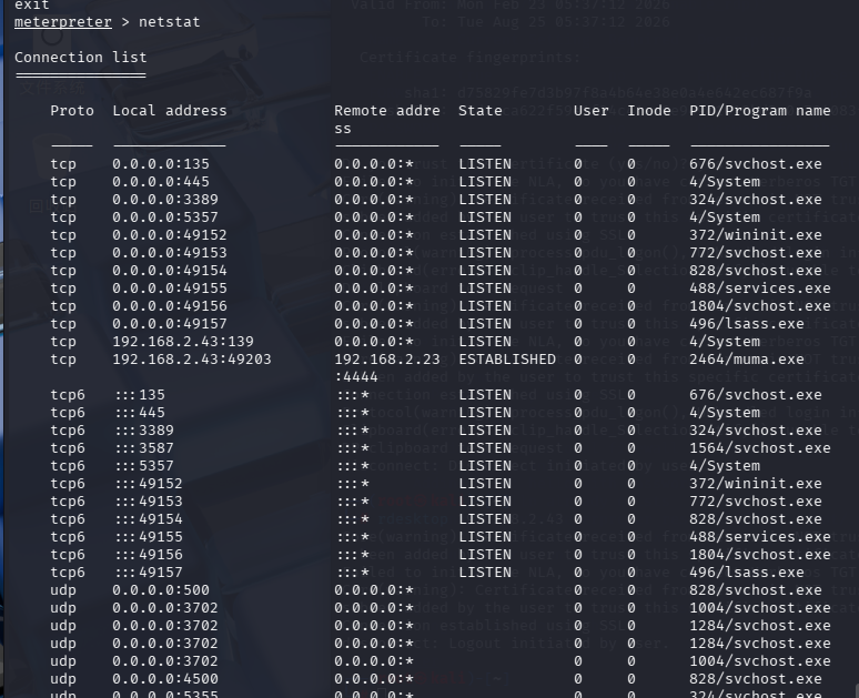 Metasploit 与 目标主机建立的会话 为 Meterpreter