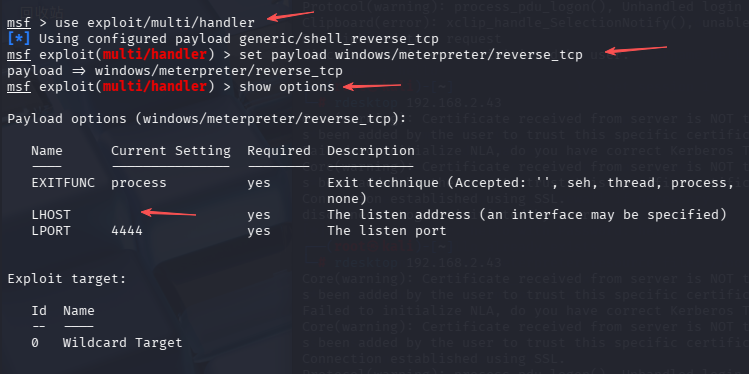 修改生成木马文件使用的payload,以监听该模块产生的会话请求