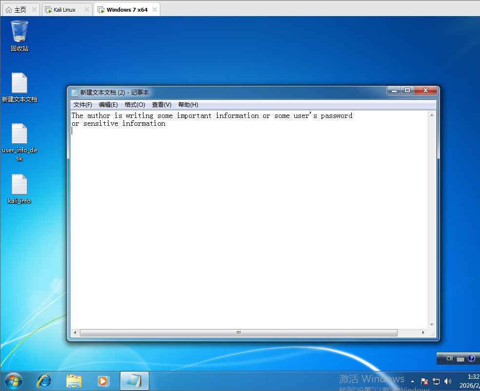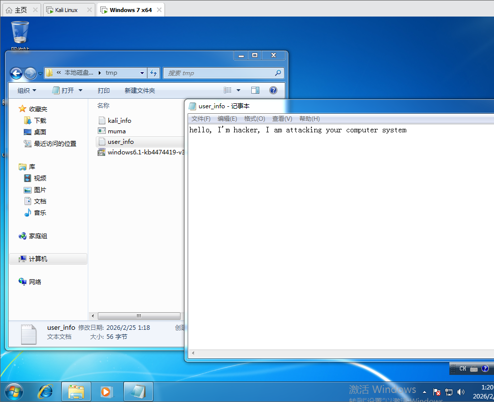 目标主机已有的文件内容被替换,文本被编辑成攻击者写入的文件内容