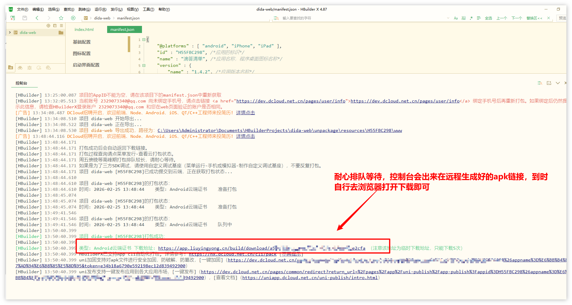 开始打包成apk