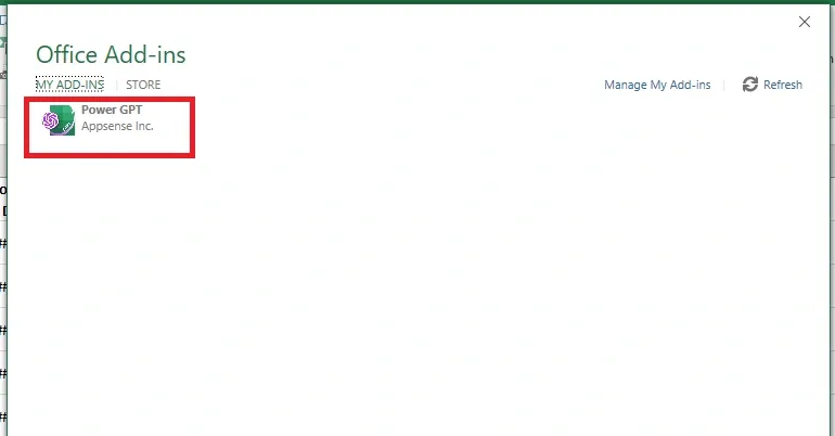 安装完成 后,返回"插入"选项卡中的****"我的加载项"部分**** 。在 已安装工具 列表中找到 ChatGPT 加载项,然后单击启动它 。ChatGPT 界面将出现,随时准备协助您完成 Excel 任务。