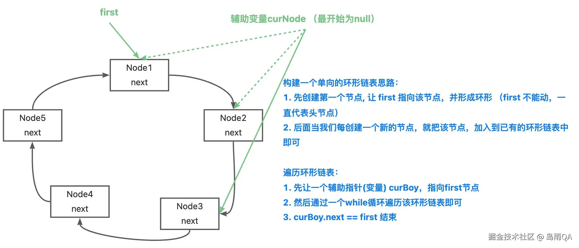 Boy curBoy = null; // 辅助指针,帮助构建环形链表。最开始为null