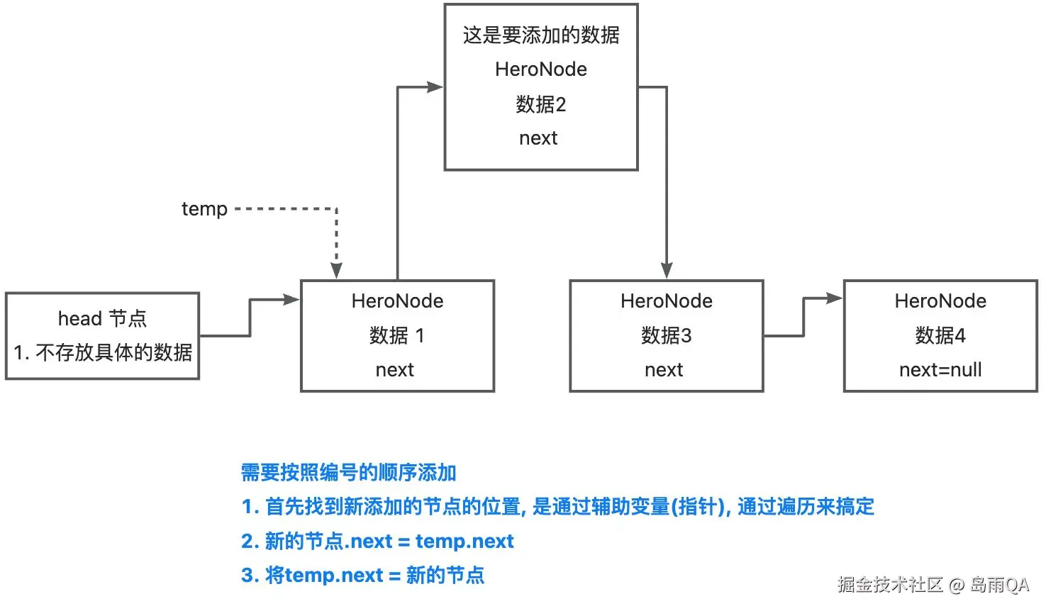 if (temp.next.no > heroNode.no) { // 【位置找到,就在temp的后面插入】