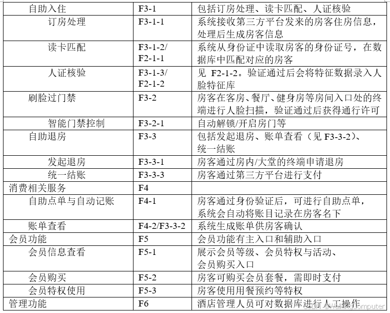 - 在退房流程中,本软件实际上需要与订房系统通信,但在本方案中不予考虑。