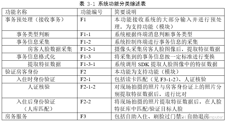 - 系统功能分类综述表(表3-1)