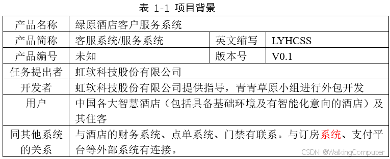 - V2.0 2020年6月 Word 2.0 版本定稿,文档名称:绿原酒店客户服务系统LYHCSS《需求分析说明书》2.0