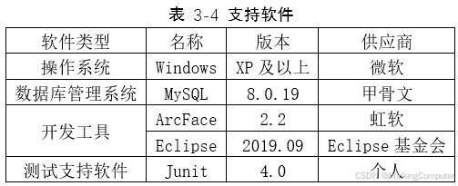 - 支持软件(表3-4)