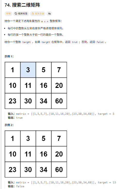 这意味着:整个矩阵如果按行"拉直",是一个严格递增的一维数组