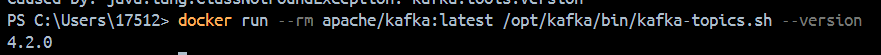 docker run --rm apache/kafka:latest /opt/kafka/bin/kafka-topics.sh --version