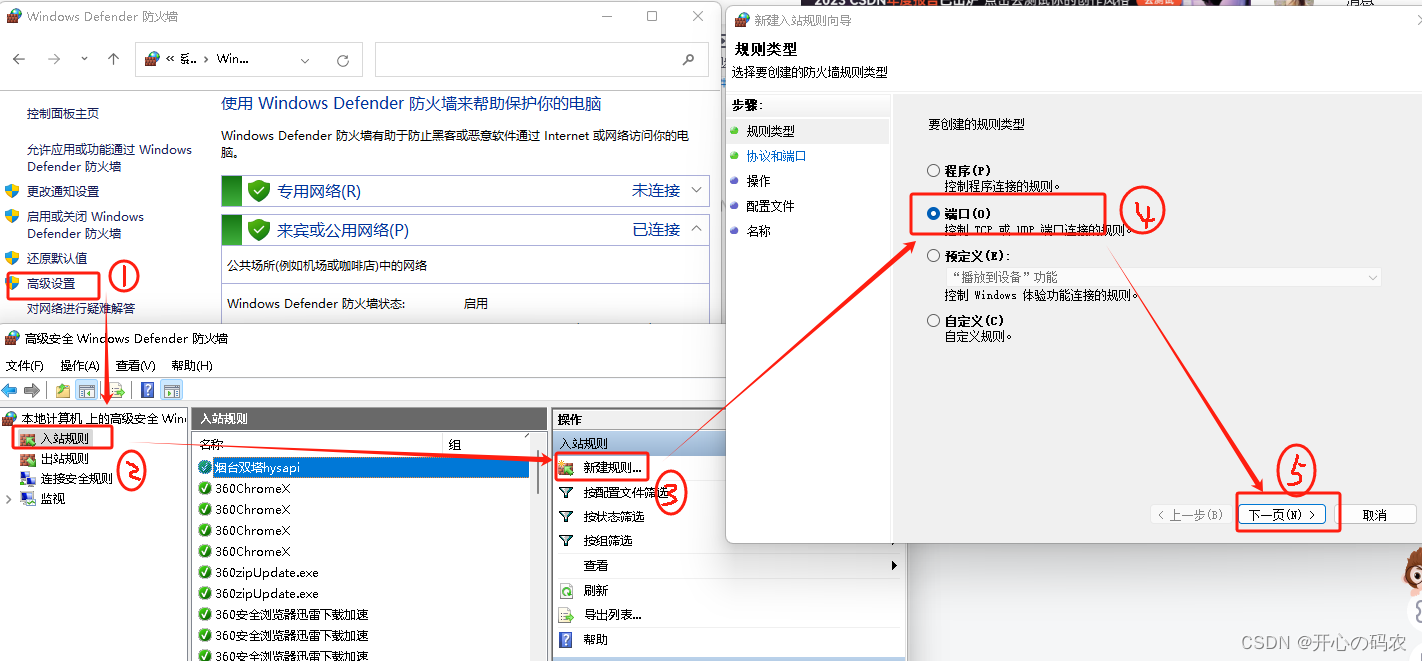 高级设置------入站/出战规则------新建规则