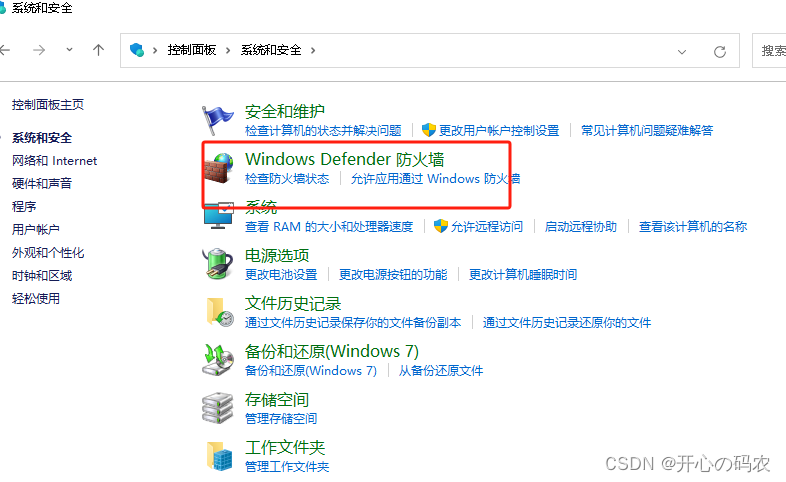 控制面板------系统和安全------Windows Defender 防火墙