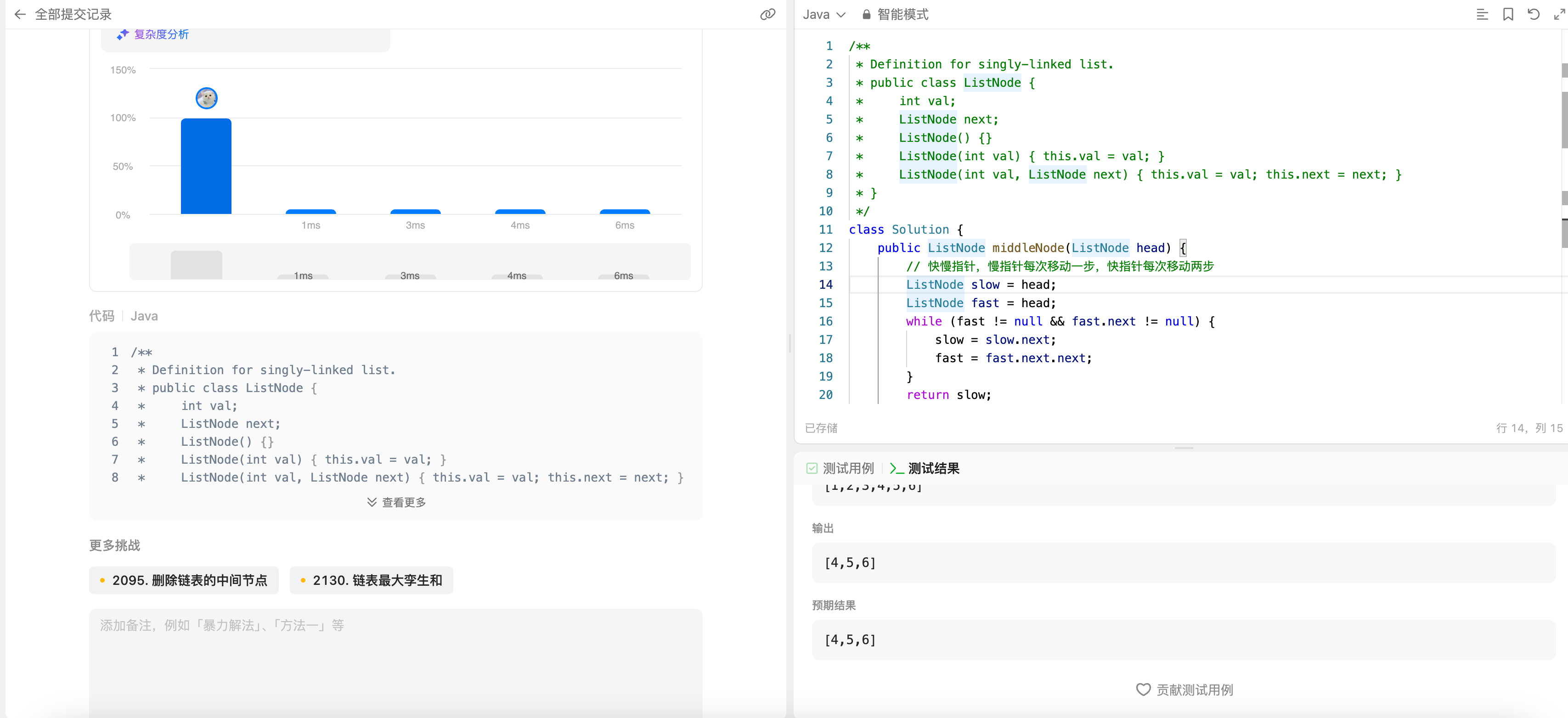 解题:快慢两个指针