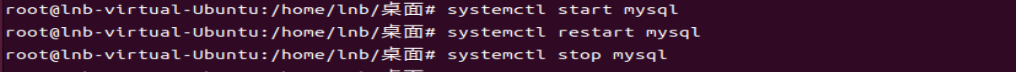 上面三条命令都是控制MySQL的启动和停止的,第一条命令显而易见是启动MySQL,第二条命令是重启,第三条命令停止服务器,当然第三条命令和第一条命令可以合并成第二条命令