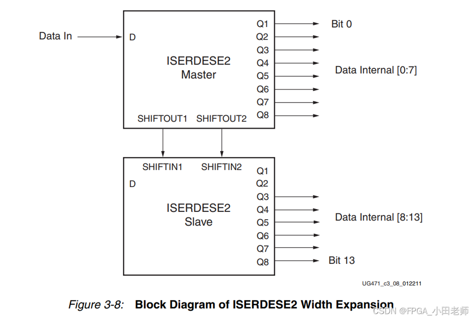 当需要大于8位的并行数据时,可以使用两个ISERDESE2进行级联: