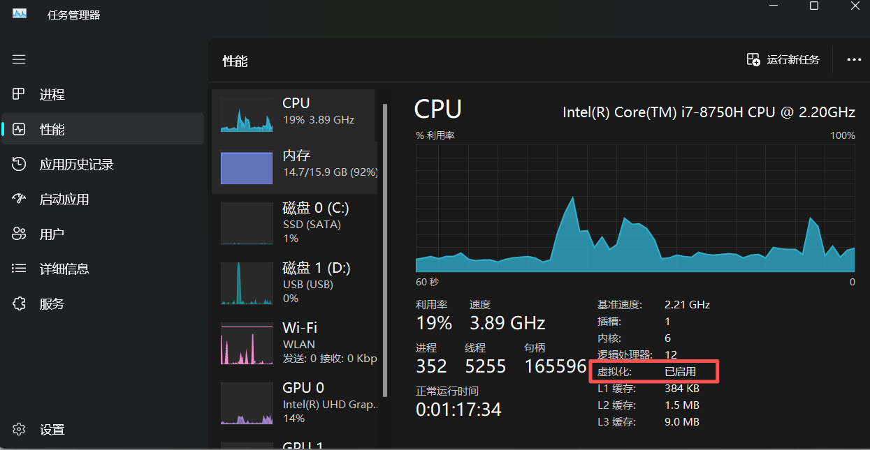 Docker 依赖虚拟化技术,需要确保 BIOS 中已启用虚拟化。