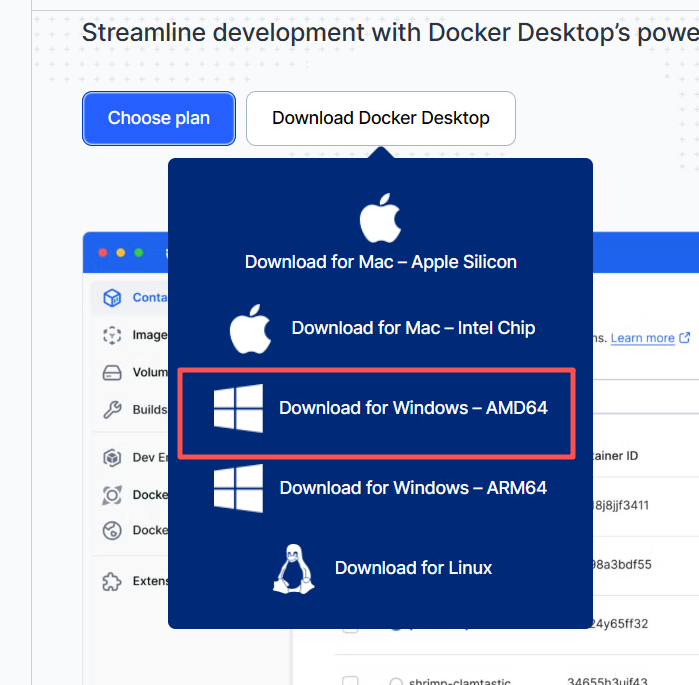 在 Windows 下安装 Docker 的方式主要是通过 Docker Desktop,它支持 WSL2 技术,大幅提高性能。