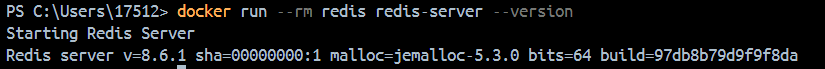执行以下命令,它会基于 redis:latest镜像启动一个临时容器,执行 redis-server --version命令后立即停止并删除容器。