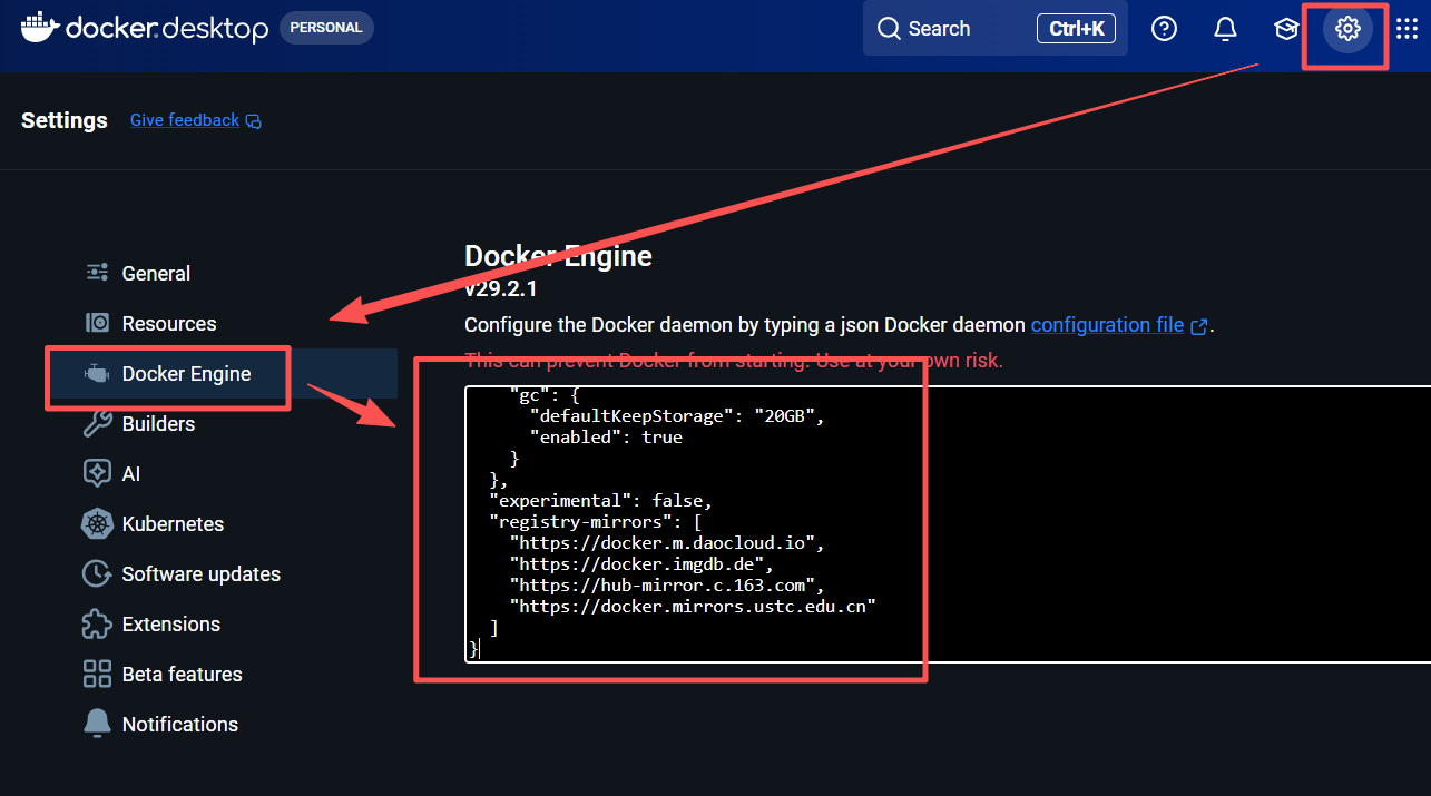 如果你是 Windows 10/11 家庭版 或者第一次安装 Docker Desktop,需要启用 WSL2。