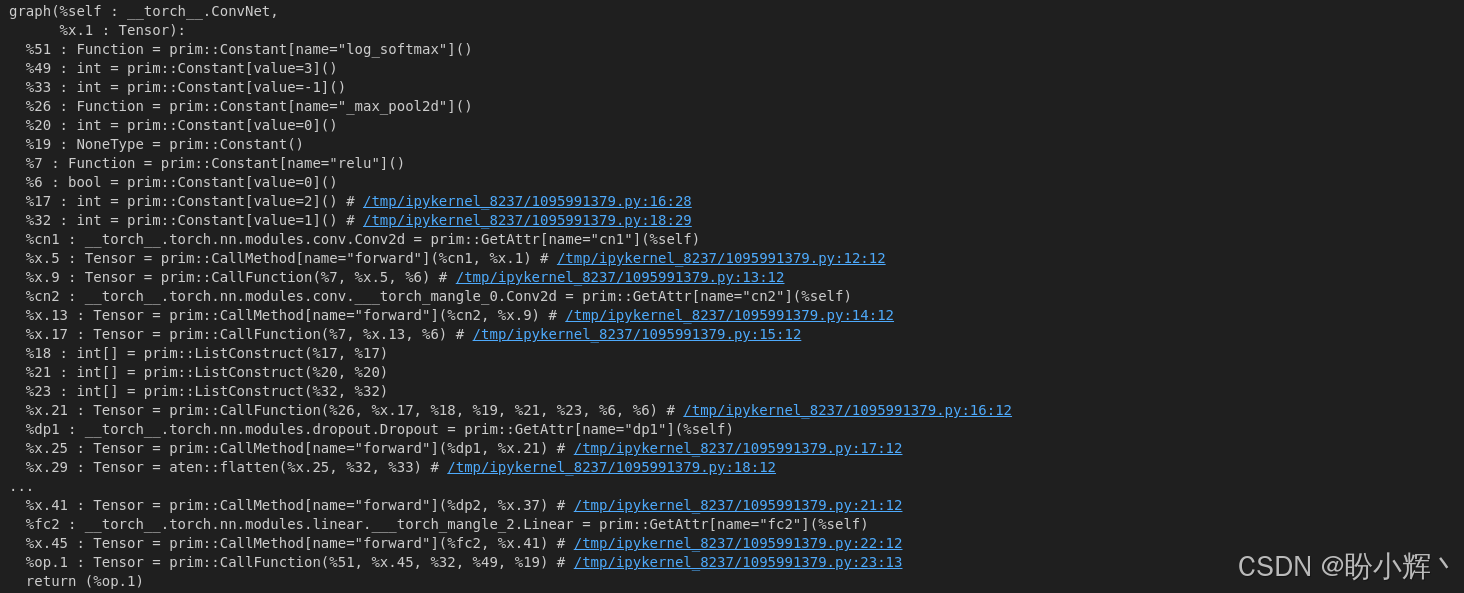 可见计算图仍以逐行描述的底层脚本形式呈现,但注意此处计算图结构与上一小节的追踪结果存在差异,这表明使用追踪与脚本化在代码编译策略上有所不同。