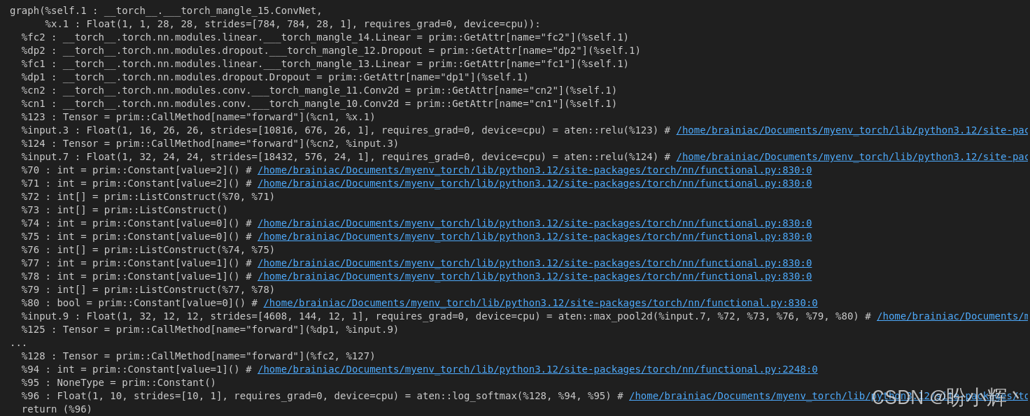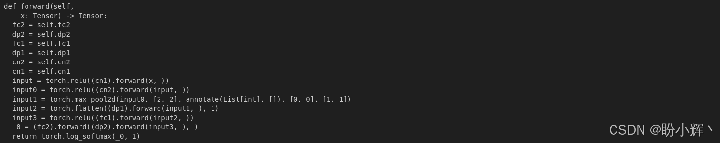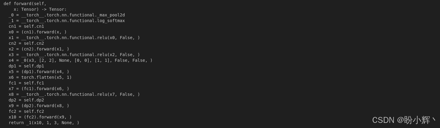 执行后将输出如下类 Python 代码,这些代码定义了模型的 forward 传播方法: