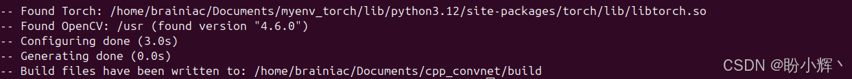 $ cmake -DCMAKE_PREFIX_PATH=/home/brainiac/Documents/myenv_torch/lib/python3.12/site-packages/torch ..