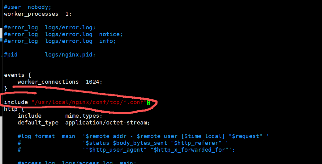 include "/usr/local/nginx/conf/tcp/*.conf";
