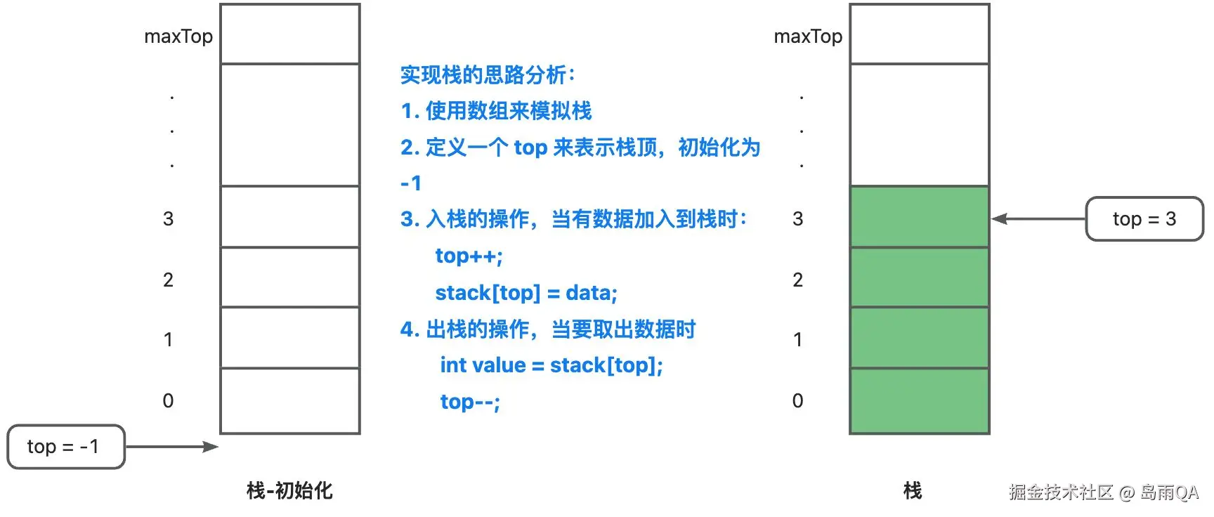 private int top = -1; // top表示栈顶,初始化为-1