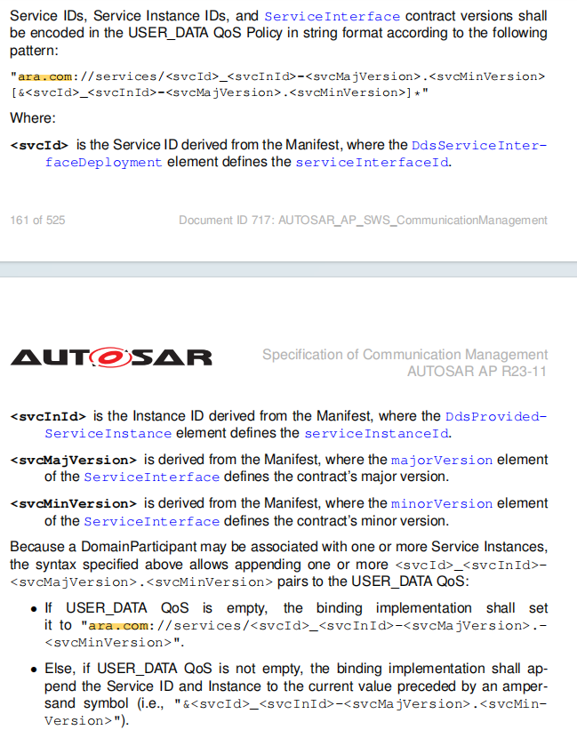 用DomainPaticipant来代表一个服务实例。当服务端OfferService的时候,创建对应的DomainParticiapant,并为DomainParticiapant设置UserData,UserData的格式按下图所示。前缀是ara.com://services/,后边是服务id,服务实例id,版本号。如果多个服务实例共用一个DomainParticipant,那么UserData也可以设置多个服务实例的信息。