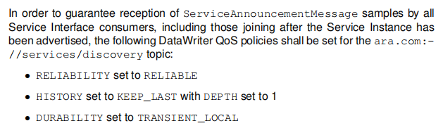 基于topic进行服务发现,则需要内不创建一个topic ara.com://services/discovery,该topic的data type为ServiceAnnouncementMessage。每个进程都要创建该topic以及对应的DataWriter和DataReader。