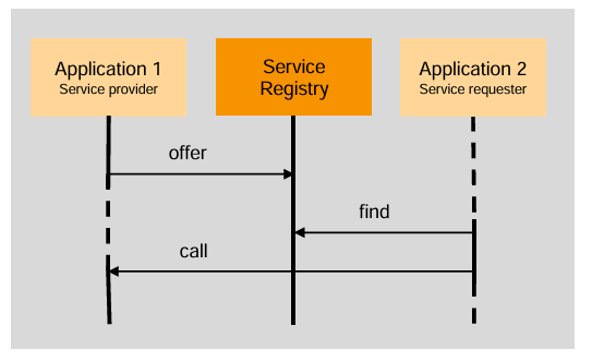 服务是核心概念,SOC中的所有概念都围绕着服务来展开。如上图所示,表示SOC的基本上示意图,有服务的提供者,服务的需求者。服务的提供者提供服务,服务的需求者查找服务,需求者找到服务之后便可以使用这个服务。