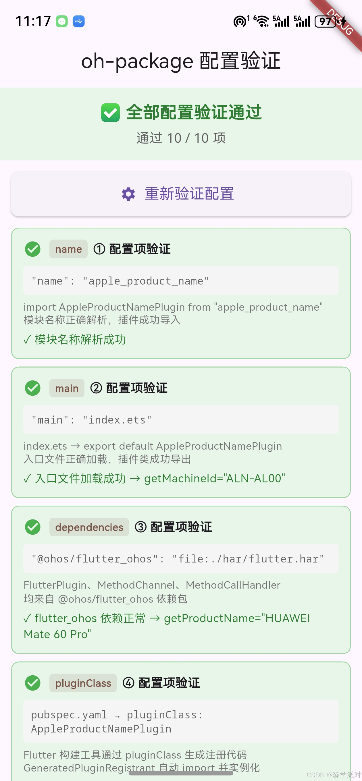 oh-package.json5 是 OpenHarmony 模块的身份证,它通过 name 定义模块标识、通过 main 指定入口文件、通过 dependencies 声明依赖关系,三者共同构成了模块被正确加载和使用的基础。apple_product_name 的配置简洁而完整,7 个字段覆盖了插件模块的全部需求,是 Flutter 插件适配 OpenHarmony 的标准配置范本。
