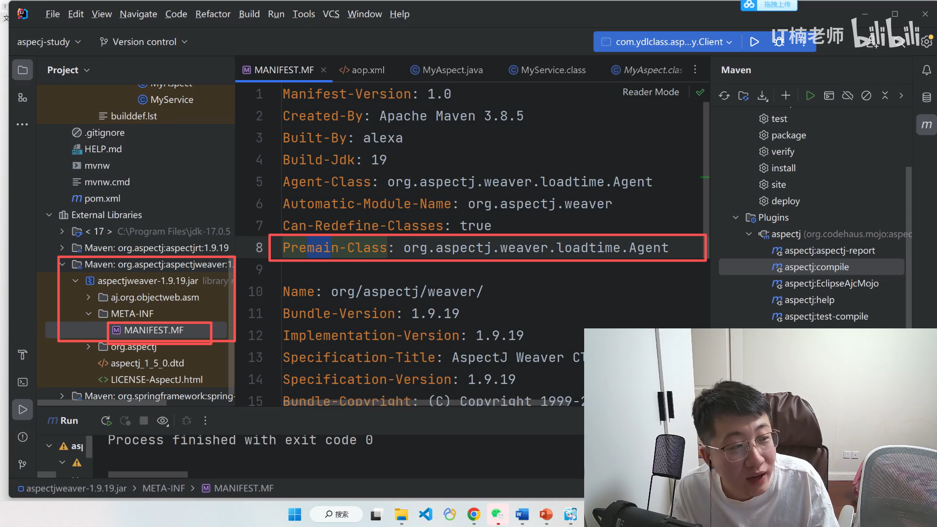 Agent这个类会帮我们注册一些属性,以后JVM在加载类的时候,会读取aop.xml文件,就知道了有哪些切面要织入到我们的这个类中。