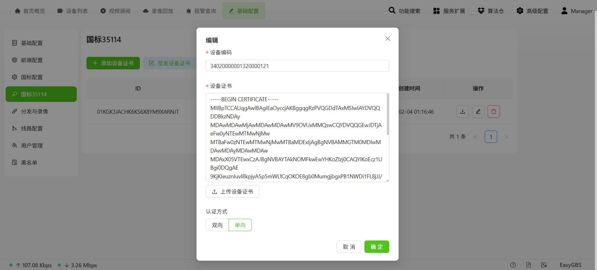 - 支持GB35114标准的安全策略,采用国密算法,实现设备身份认证、信令加密、视频加密、完整性校验、防重放、防篡改,全程国产密码支撑,安全自主可控,摆脱外部密码依赖风险。