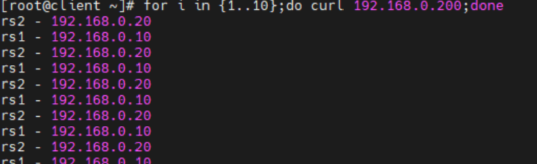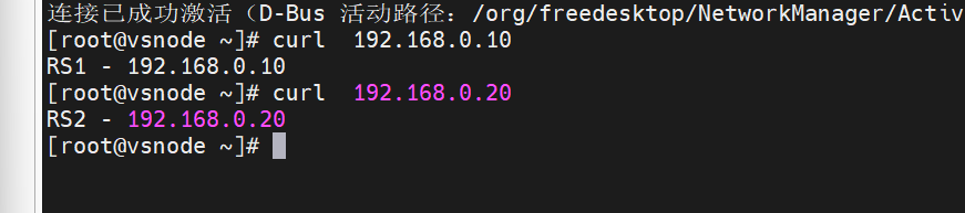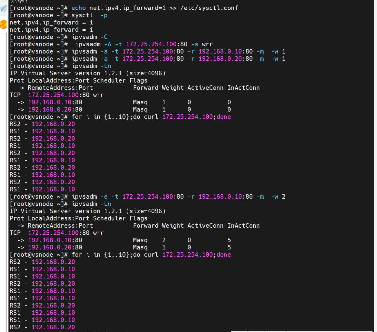 | VS | NAT模式( DIP:172.25.254.100) 仅主机模式(VIP:192.168.0.100) | 172.25.254.100(NAT) 192.168.0.100(仅主机) | |