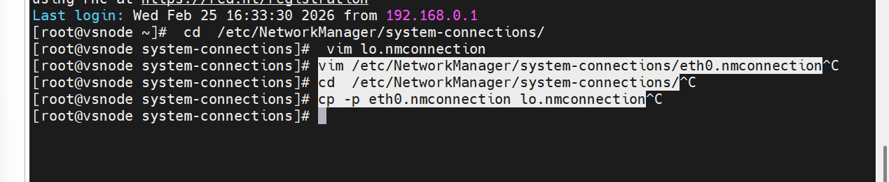 [root@RS1 system-connections]# cp -p eth0.nmconnection lo.nmconnection