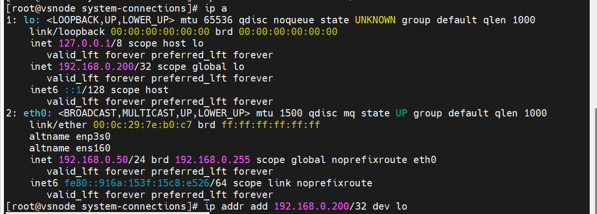 inet 192.168.0.200/32 scope global lo
