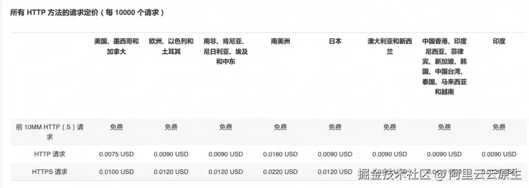 CloudFront 请求次数价格(每月前 100 万次免费):