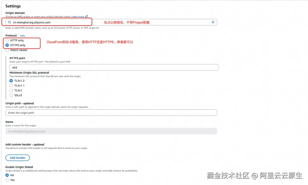 CloudFront 访问 SLS 域名,使用 HTTP 或者 HTTPS 都可以。