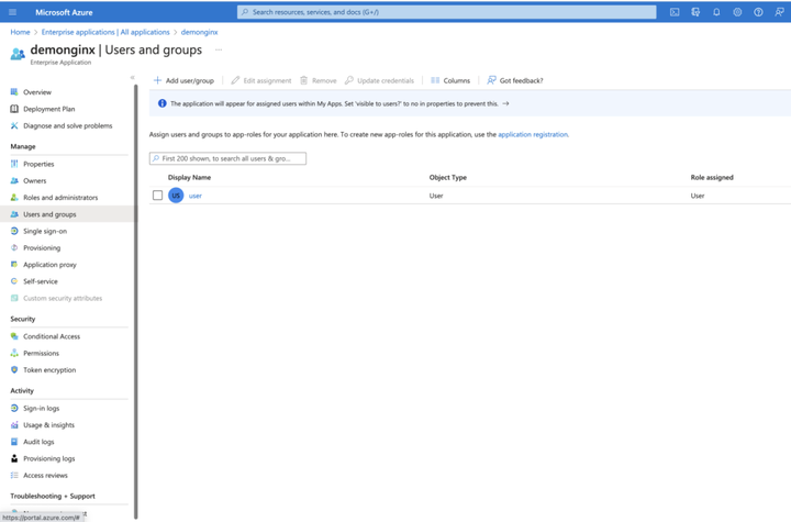 注:在此演示中,修改了属性和声明,并添加了新的 SAML 属性。这些 SAML 属性由 IdP 发送。确保已将 NGINX 配置设置为正常接收和处理这些属性。您可以在 NGINX GitHub 仓库中查看并调整相关设置。