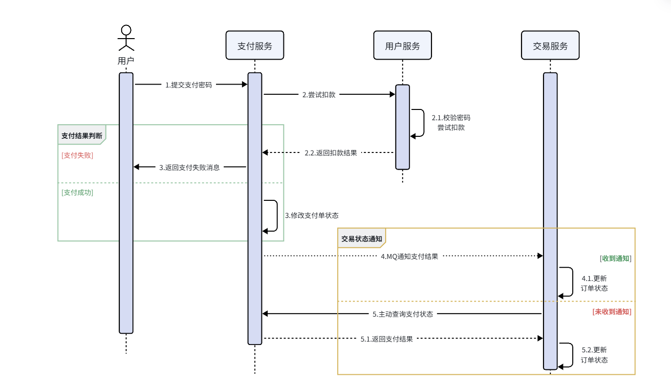 兜底方案 :交易服务通过定时任务,定期主动查询支付服务的支付状态,同步订单状态。