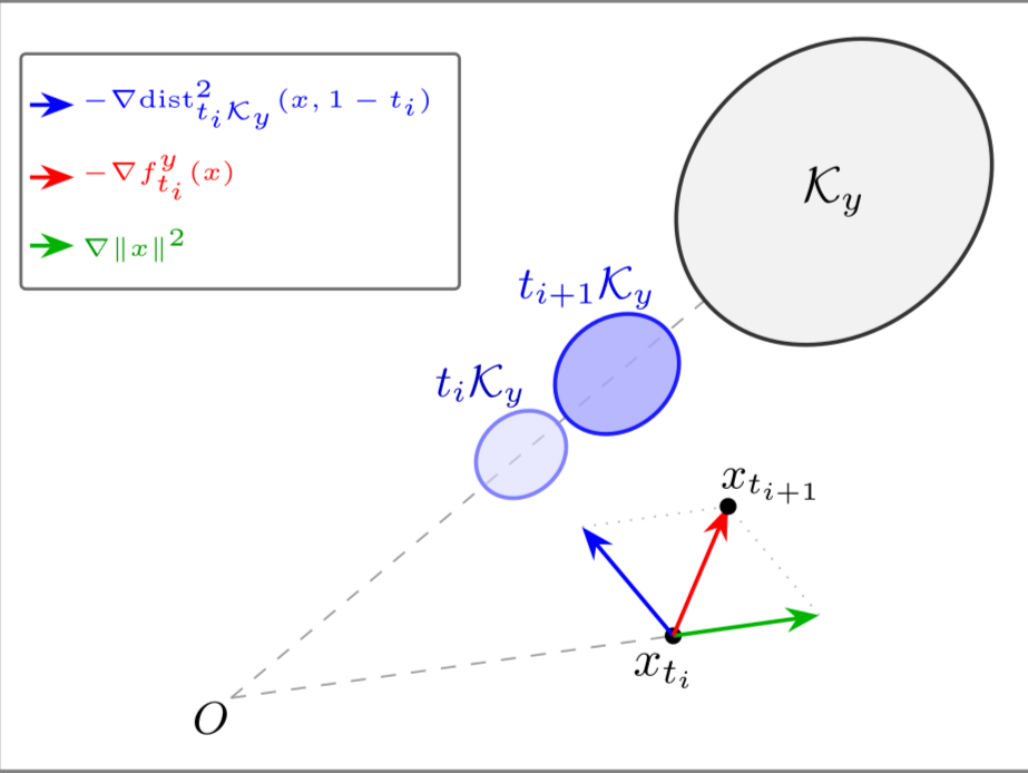 CFG的采样过程可以被重新解释为一个同伦优化(homotopy optimization)过程,旨在最小化目标图像集 的距离函数。每个采样步骤