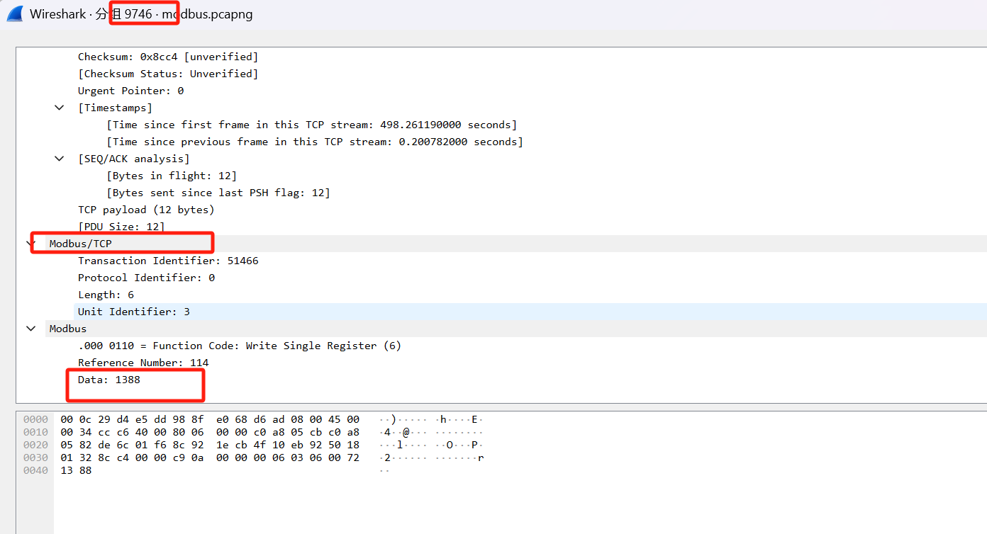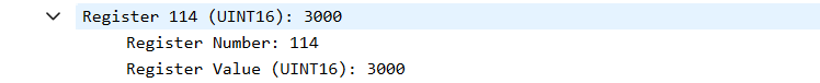 专门看这些写入单个寄存器的流量就好,阅读之后会发现其实并不止一条流量发送的data值大于3000,那这么多流量我们改选哪个呢,我查了一下网上大部分的wp,其实说的并没有很清楚。其实这里要用到我们另一个参数,即参数3,来查看寄存器数值的变化。